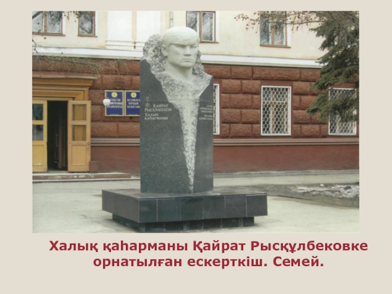 Халық қаһарманы Қайрат Рысқұлбековке орнатылған ескерткіш. Семей.