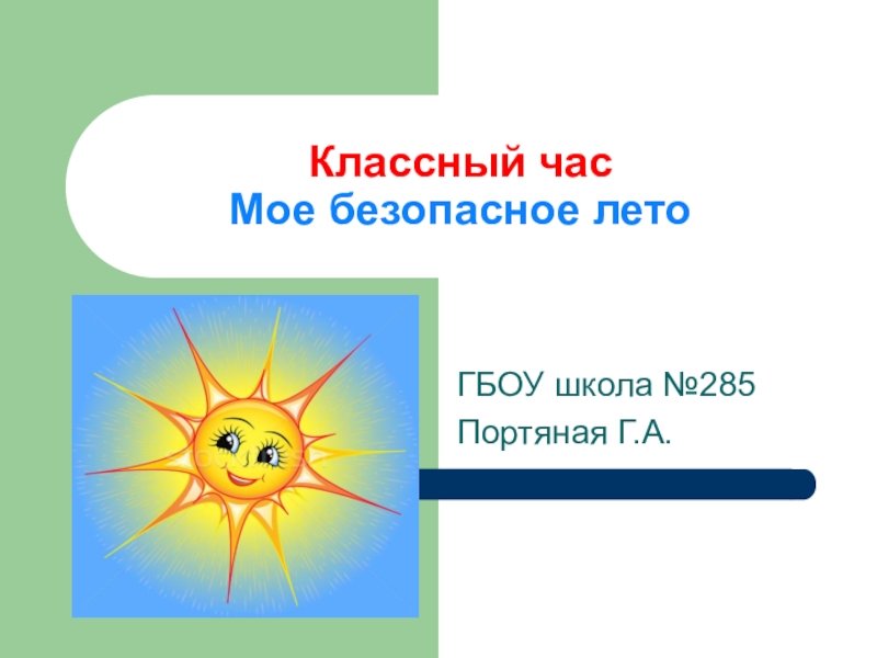 Классный час  Мое безопасное летоГБОУ школа №285 Портяная Г.А.