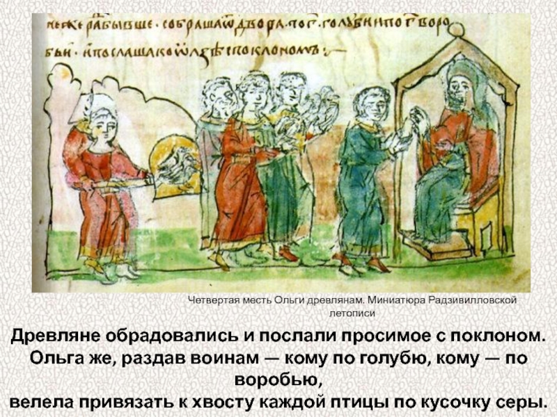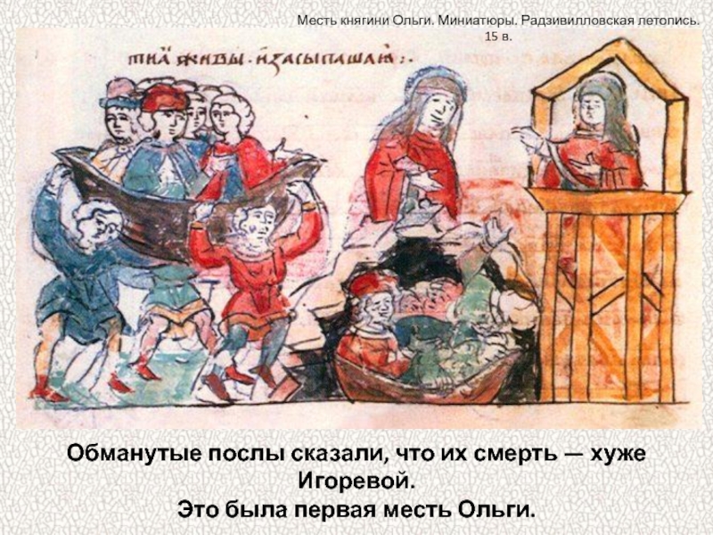 Месть княгини Ольги. Миниатюры. Радзивилловская летопись. 15 в.