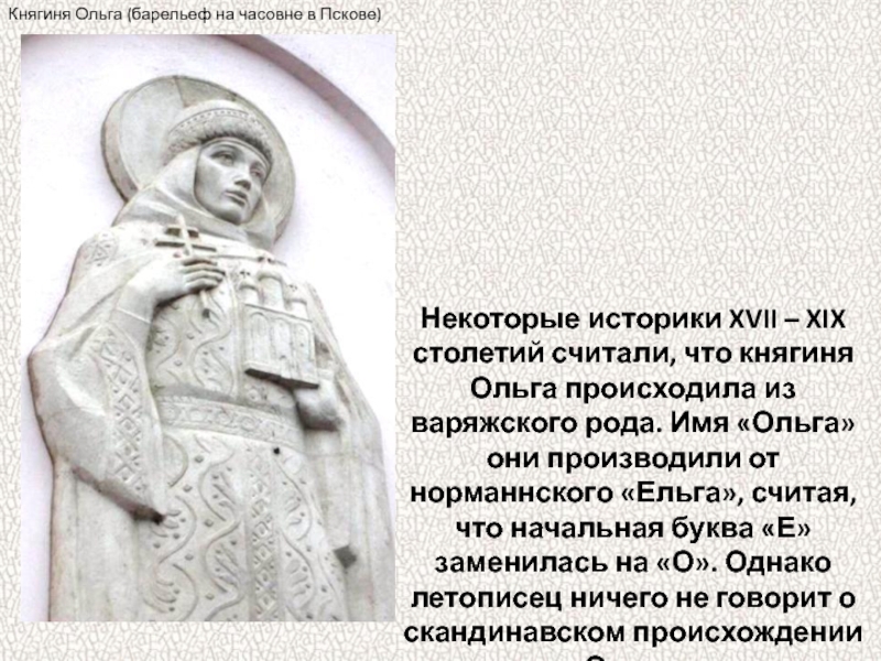 Княгиня Ольга (барельеф на часовне в Пскове)