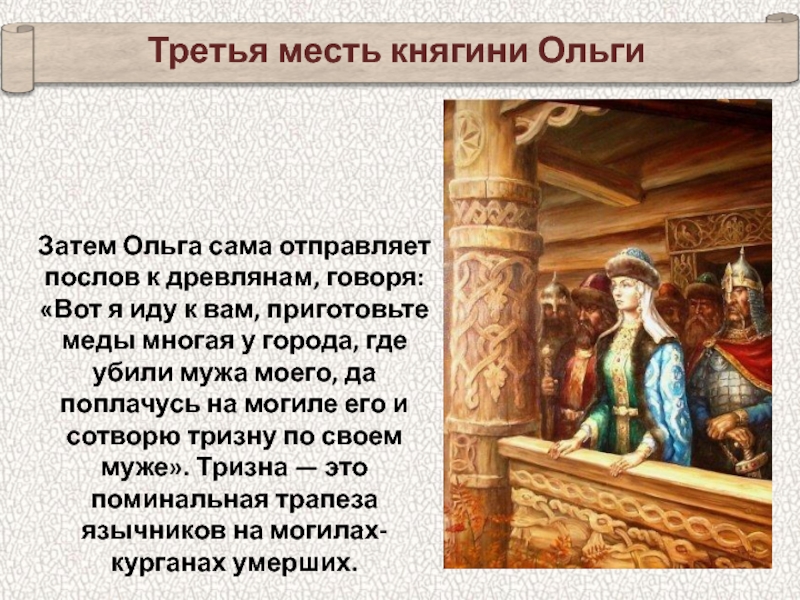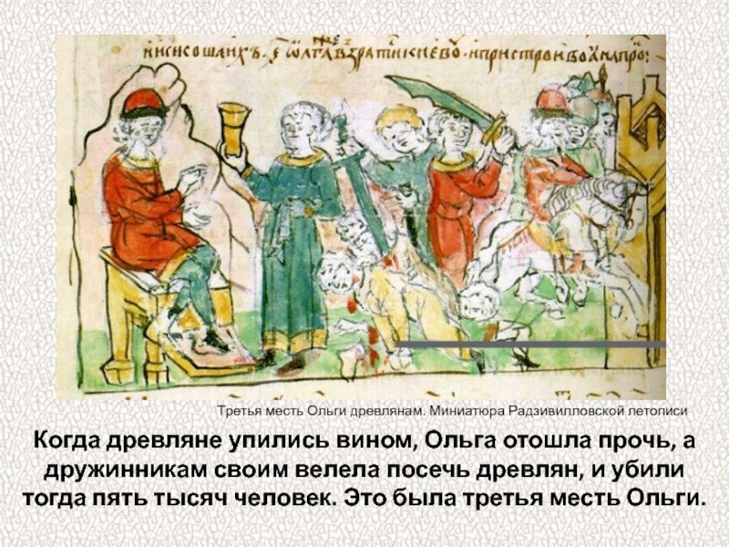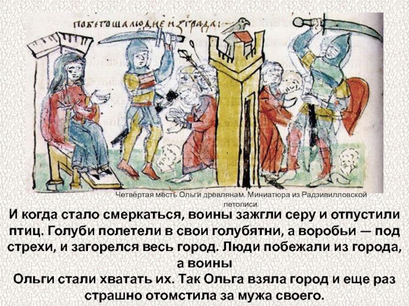 Четвёртая месть Ольги древлянам. Миниатюра из Радзивилловской летописи.