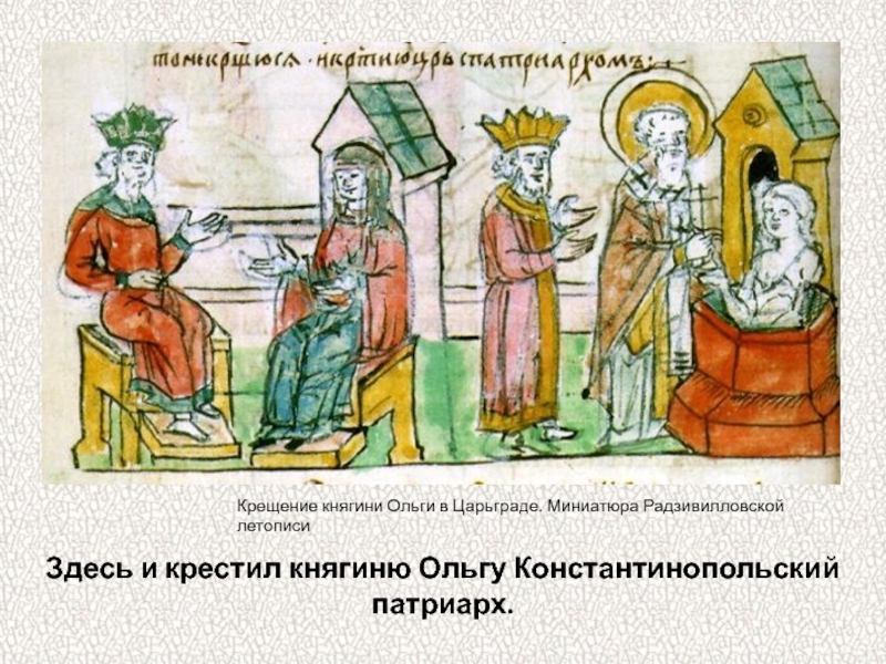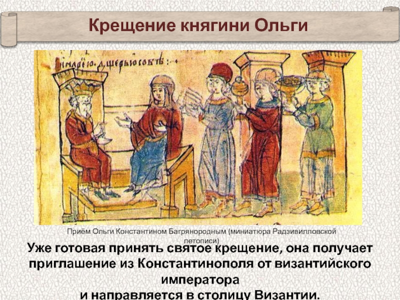 Приём Ольги Константином Багрянородным (миниатюра Радзивилловской летописи)