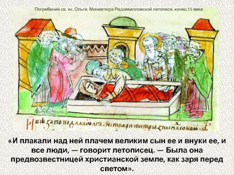 Погребение св. кн. Ольги. Миниатюра Радзивилловской летописи, конец 15 века
