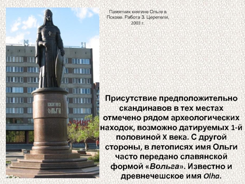 Памятник княгине Ольге в Пскове. Работа З. Церетели, 2003 г.