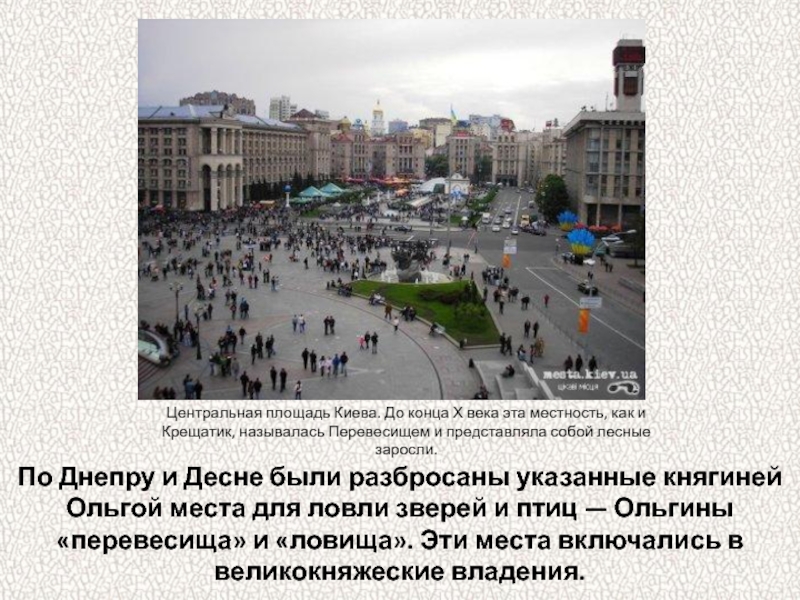 Центральная площадь Киева. До конца Х века эта местность, как и Крещатик, называлась Перевесищем и представляла собой лесные заросли.