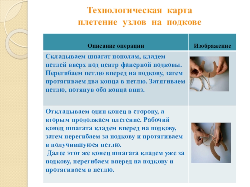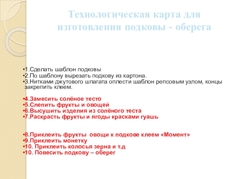 Слайд 14Технологическая карта для изготовления подковы - оберега
