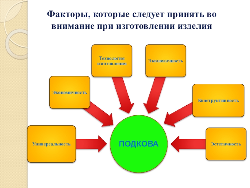 Слайд 5Факторы, которые следует принять во внимание при изготовлении изделия