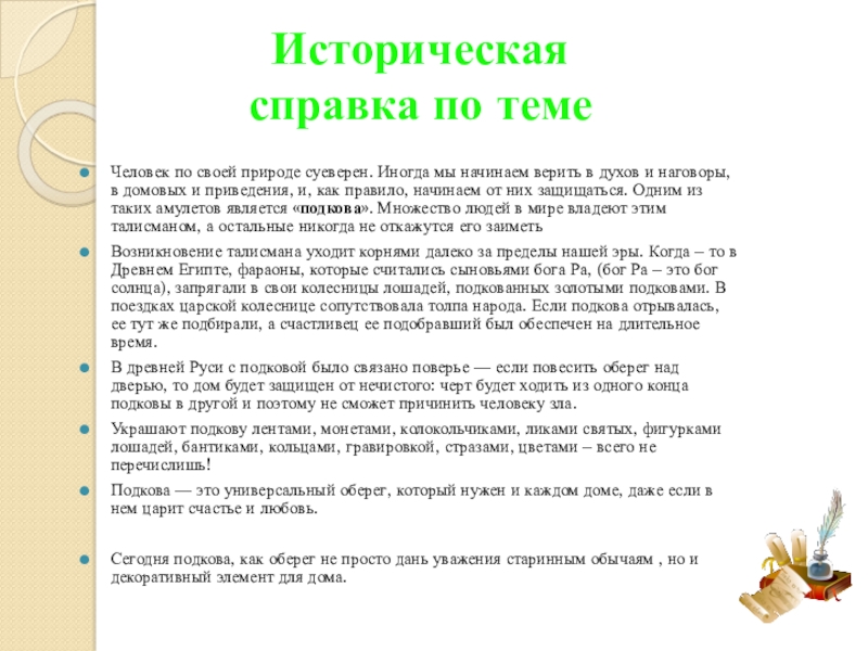 Слайд 10Обоснования выбора эскиза подковы-оберега