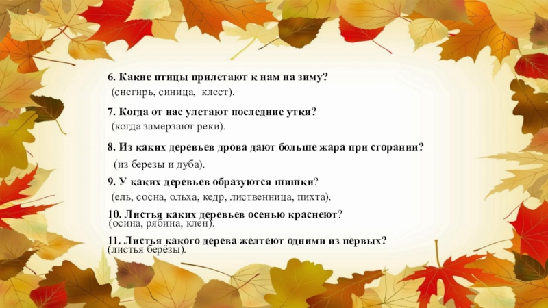 (ель, сосна, ольха, кедр, лиственница, пихта).