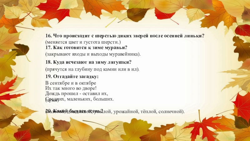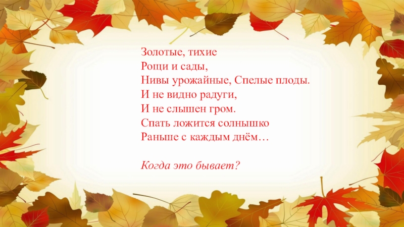 (золотой, дождливой, унылой, урожайной, тёплой, солнечной).