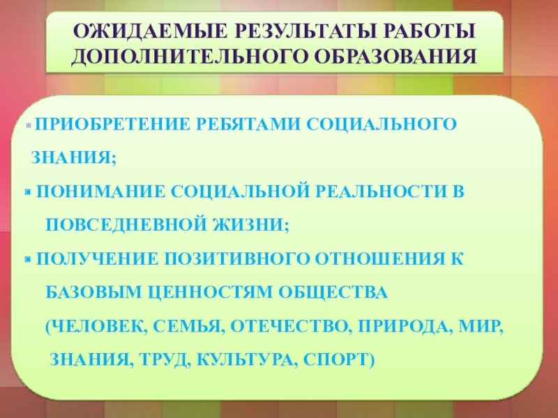 Слайд 7Ожидаемые результаты работы Дополнительного образования