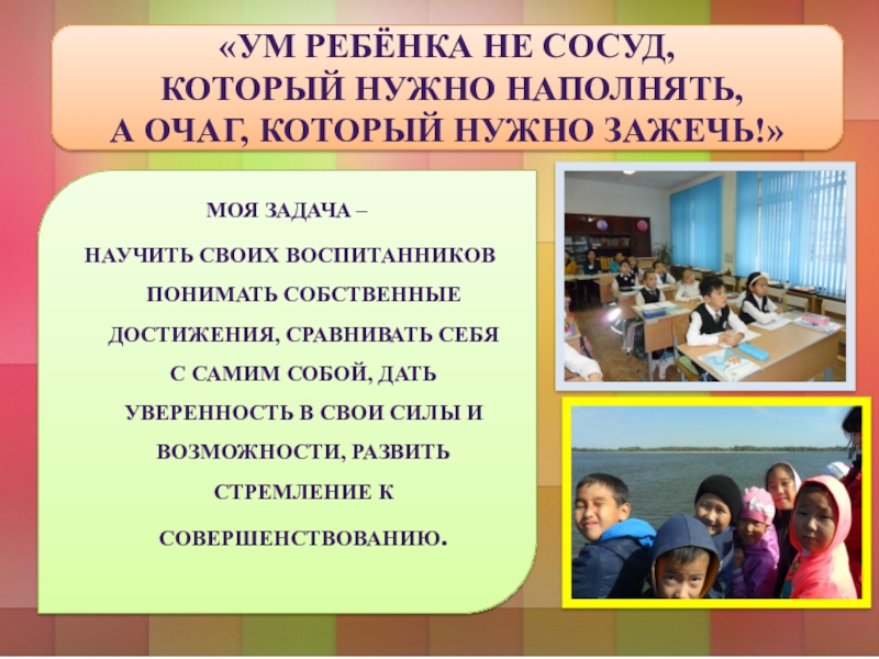 научить своих воспитанников понимать собственные достижения, сравнивать себя с самим собой, дать уверенность в свои силы и возможности, развить стремление к совершенствованию.