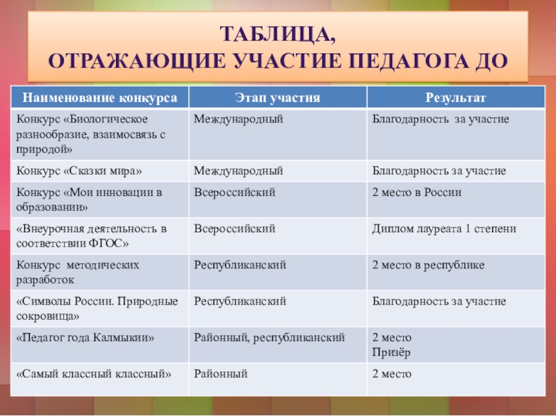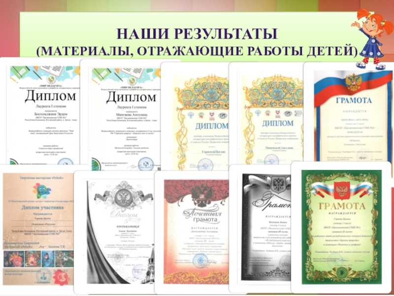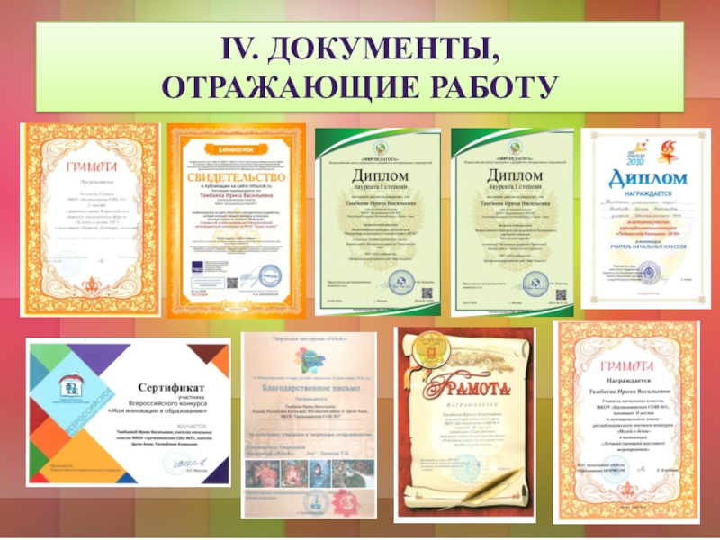 Документы, отражающие работу (Дипломы, грамоты, сертификаты, таблица)