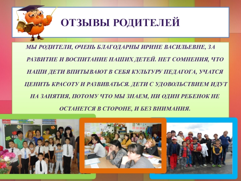 Мы родители, очень благодарны Ирине Васильевне, за развитие и воспитание