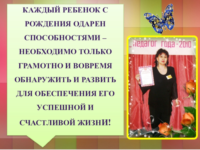 Слайд 28Каждый ребенок с рождения одарен способностями – необходимо только грамотно и