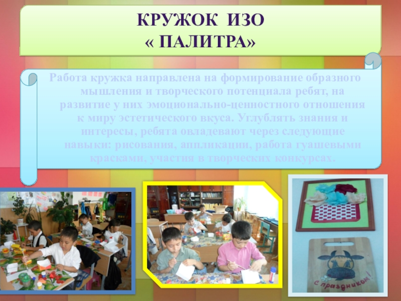 потенциала ребят, на развитие у них эмоционально-ценностного отношения к миру эстетического вкуса. Углублять знания и интересы, ребята овладевают через следующие навыки: рисования, аппликации, работа гуашевыми красками, участия в творческих конкурсах.