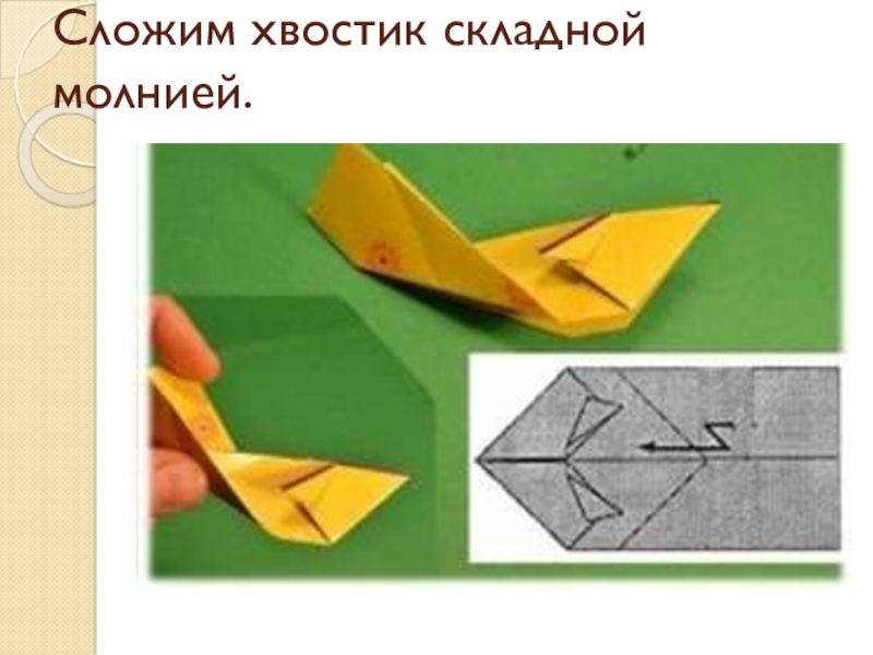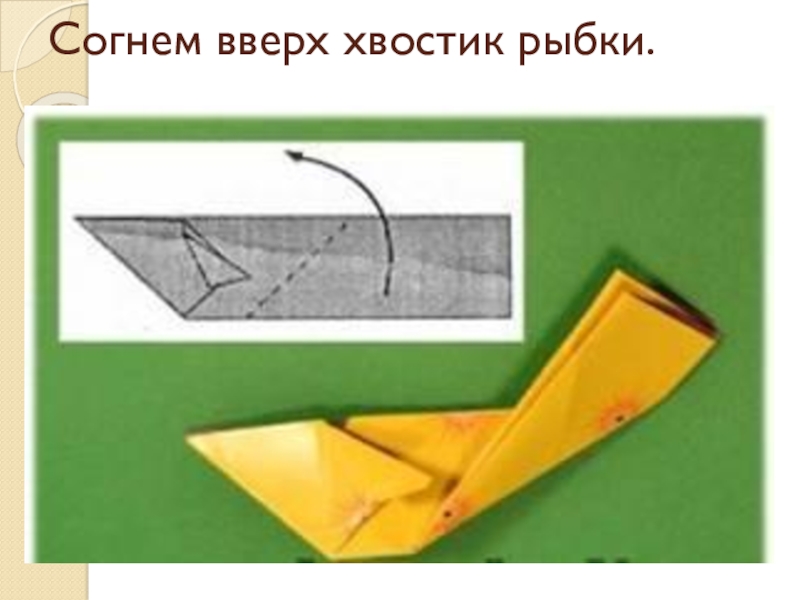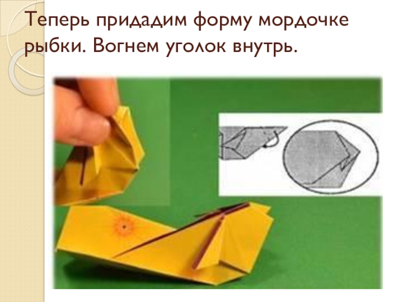 Слайд 23Теперь придадим форму мордочке рыбки. Вогнем уголок внутрь.