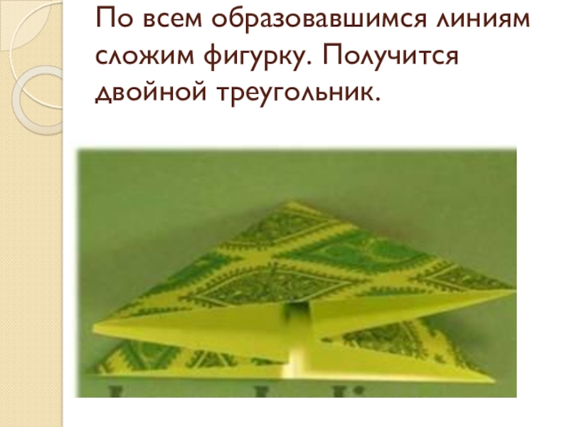 Слайд 29По всем образовавшимся линиям сложим фигурку. Получится двойной треугольник.