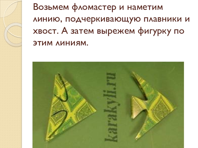 Слайд 30 Возьмем фломастер и наметим линию, подчеркивающую плавники и хвост. А затем