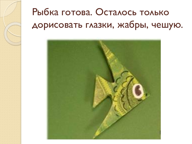 Слайд 31Рыбка готова. Осталось только дорисовать глазки, жабры, чешую.
