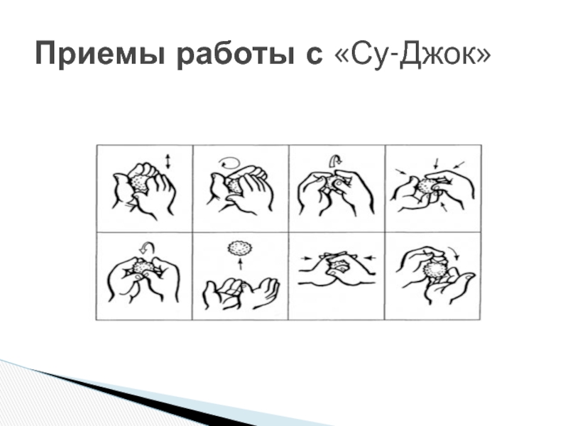 Мяч лежит на ладошке. Выполнять круговые движения по всем пальчикам, ладони по часовой стрелке. Вначале рабочая поверхность правой руки, затем — левой руки. Следить за ощутимым нажимом ладоней. 6–8 раз.