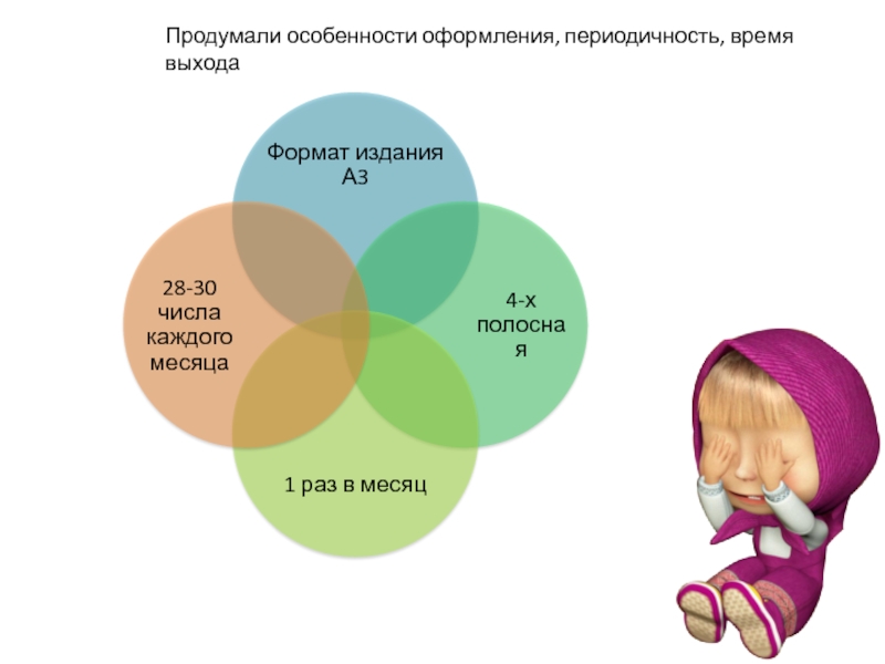 Слайд 8Продумали особенности оформления, периодичность, время выхода