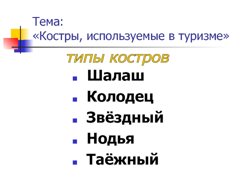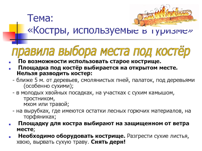 «Костры, используемые в туризме»