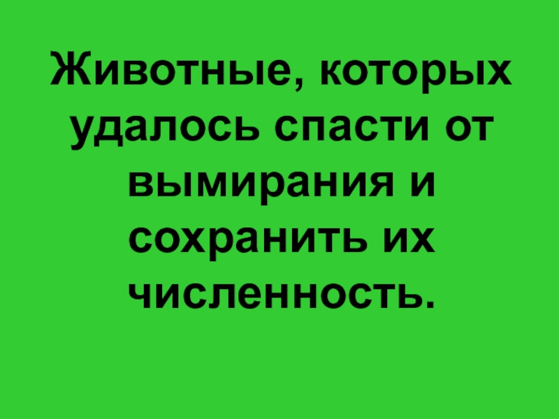 Слайд 14Животные, которых удалось спасти от вымирания и сохранить их численность.