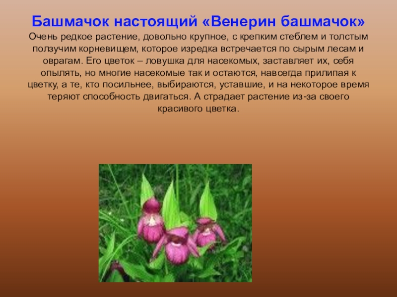 Слайд 22Башмачок настоящий «Венерин башмачок»