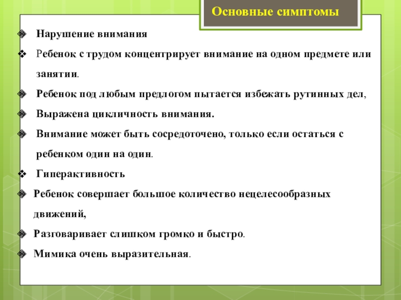 Ребенок с трудом концентрирует внимание на одном предмете или занятии.