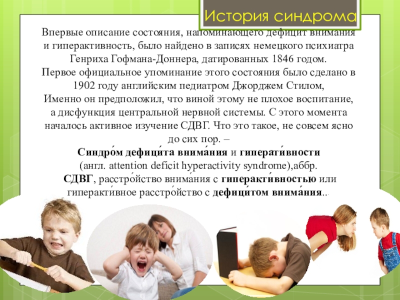 Впервые описание состояния, напоминающего дефицит внимания и гиперактивность, было