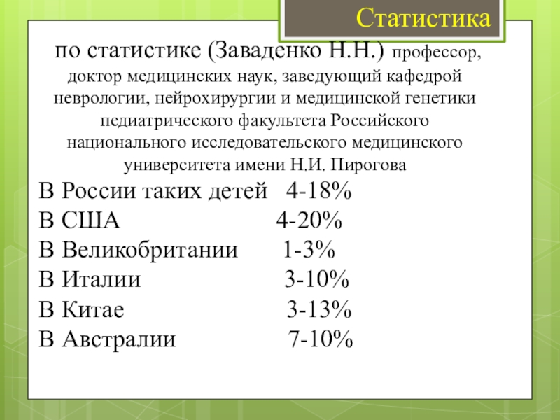 по статистике (Заваденко Н.Н.) профессор, доктор медицинских