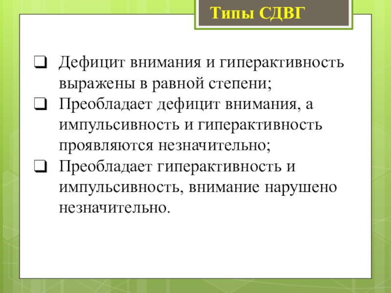 Преобладает дефицит внимания, а импульсивность и гиперактивность проявляются незначительно;