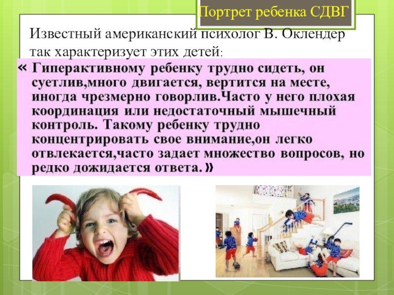 Именно он предположил, что виной этому не плохое воспитание, а дисфункция центральной нервной системы. С этого момента началось активное изучение СДВГ. Что это такое, не совсем ясно до сих пор. –