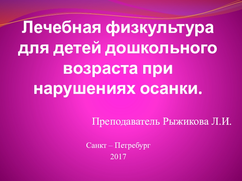 Слайд 1Лечебная физкультура для детей дошкольного возраста при нарушениях осанки.