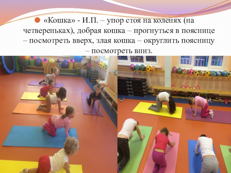 Слайд 17«Кошка» - И.П. – упор стоя на коленях (на четвереньках), добрая