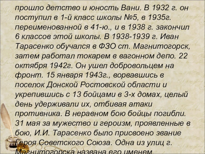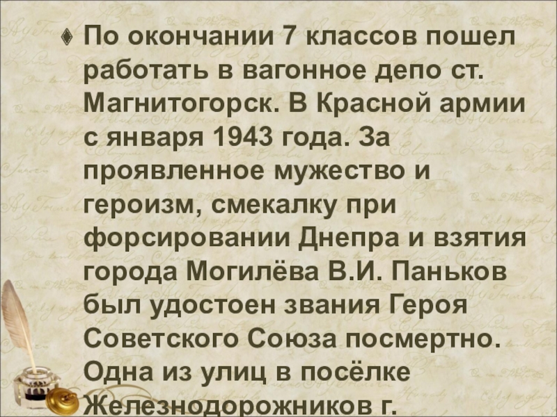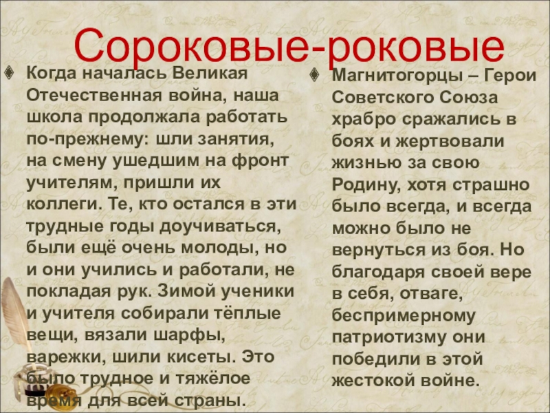 Магнитогорцы – Герои Советского Союза храбро сражались в боях и жертвовали жизнью за свою Родину, хотя страшно было всегда, и всегда можно было не вернуться из боя. Но благодаря своей вере в себя, отваге, беспримерному патриотизму они победили в этой жестокой войне.
