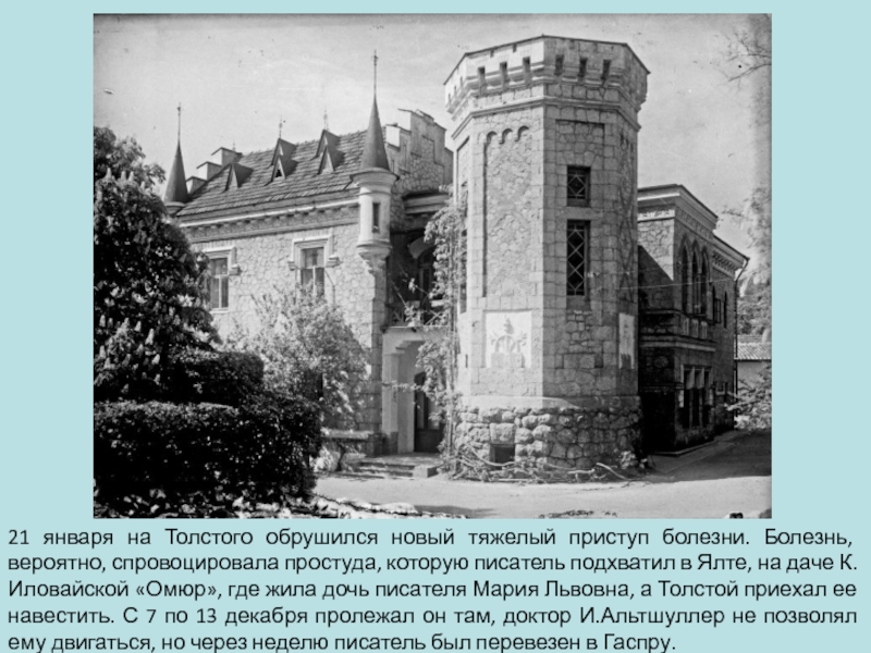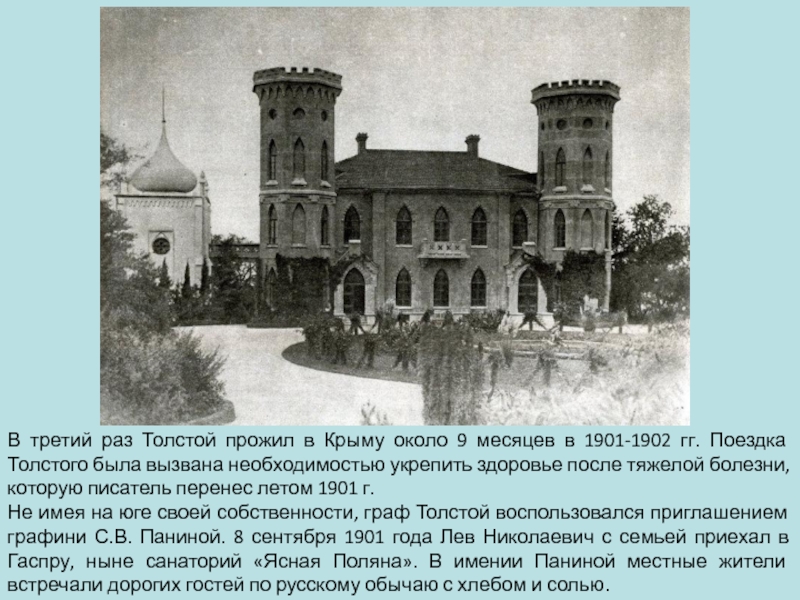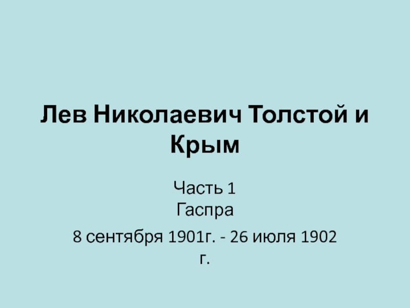 Презентация, доклад на тему Лев Николаевич Толстой и Крым. Часть 1. Гаспра