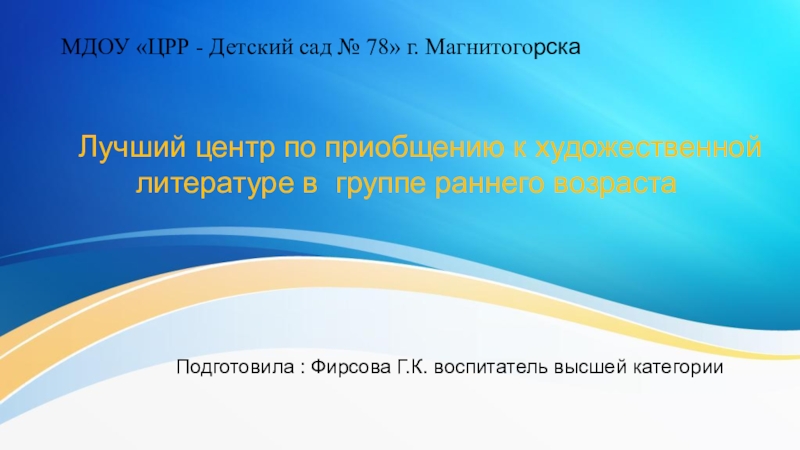 Лучший центр по приобщению к художественной литературе в группе раннего возраста