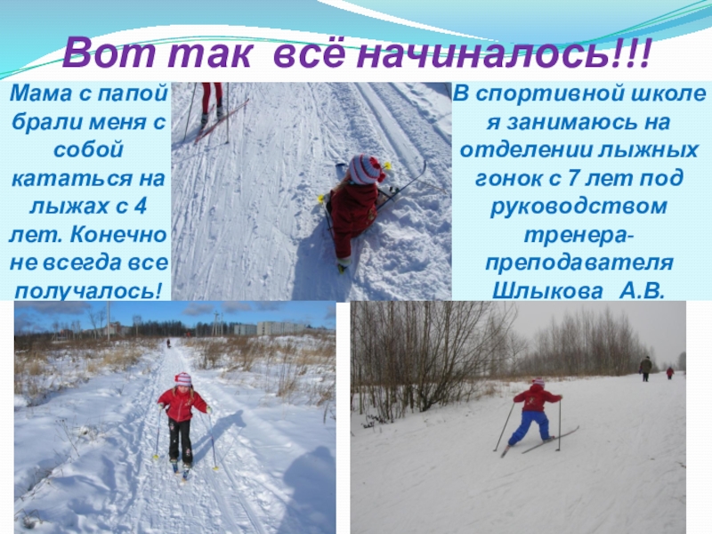 Мама с папой брали меня с собой кататься на лыжах с 4 лет. Конечно не всегда все получалось!