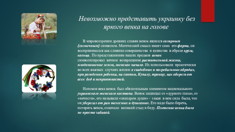 Слайд 5Невозможно представить украинку без яркого венка на голове