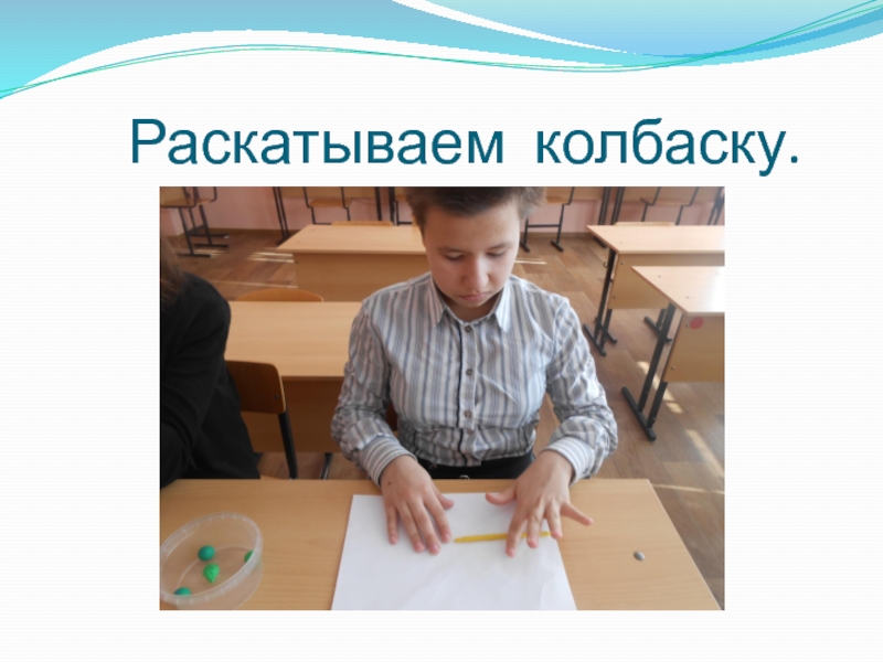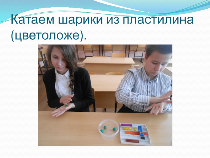 Слайд 4Катаем шарики из пластилина (цветоложе).