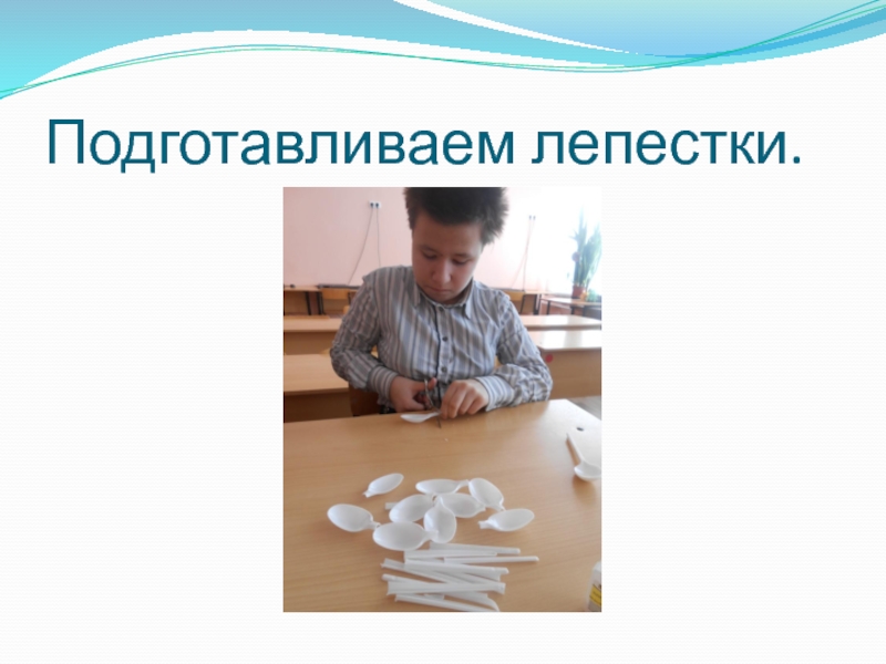 Слайд 11Отламываем (или отрезаем) ручки от ложек.