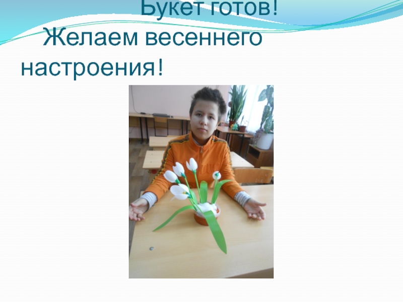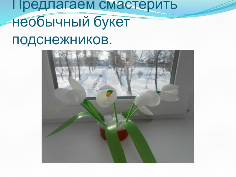 Слайд 2Предлагаем смастерить необычный букет подснежников.