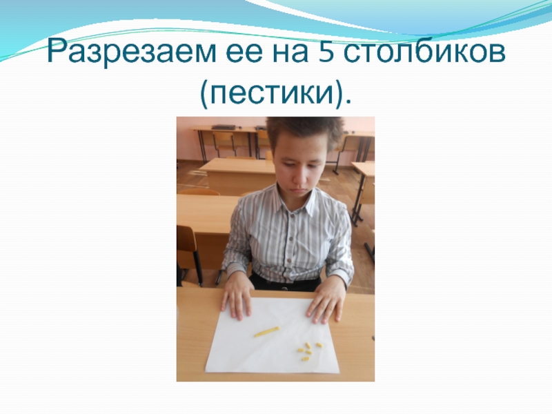 Слайд 7Разрезаем ее на 5 столбиков (пестики).