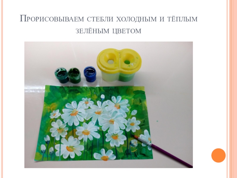 Слайд 8Прорисовываем стебли холодным и тёплым зелёным цветом