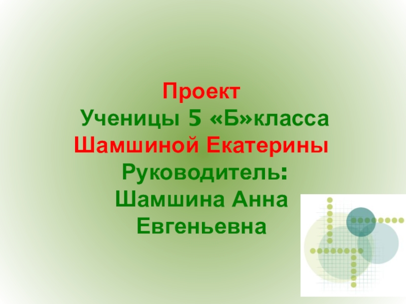Проект Ученицы 5 «Б»класса  Шамшиной Екатерины  Руководитель: Шамшина Анна Евгеньевна
