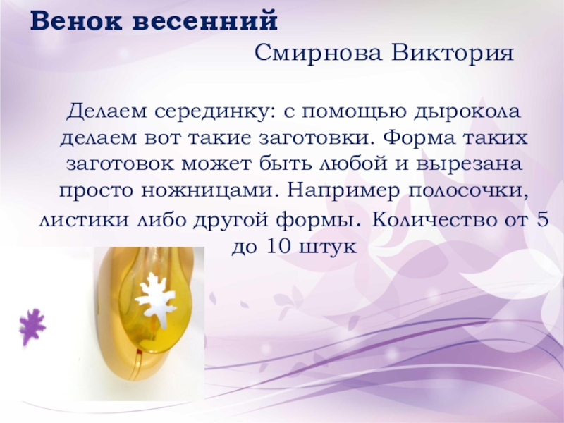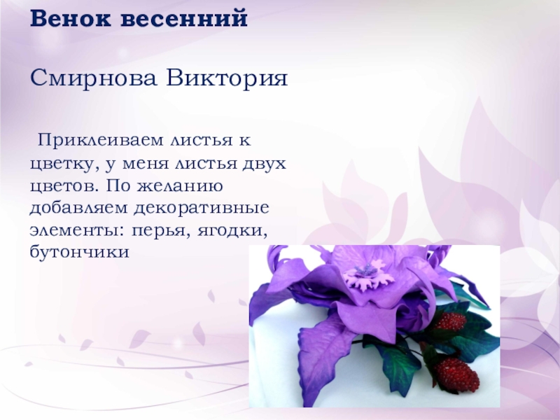 Слайд 3Венок весенний Смирнова Виктория