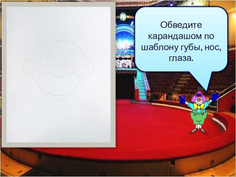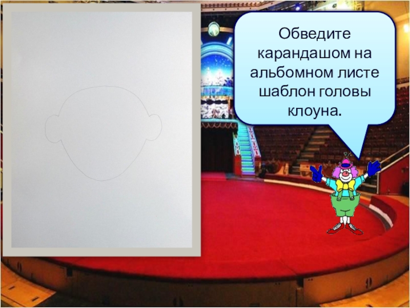 Обведите карандашом на альбомном листе шаблон головы клоуна.