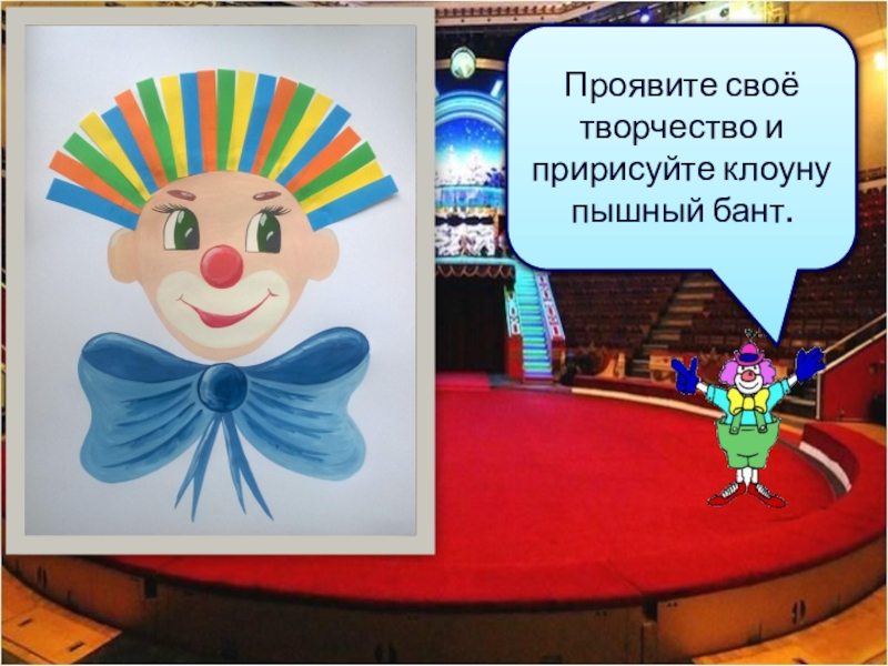 Проявите своё творчество и пририсуйте клоуну пышный бант.
